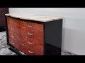 Anstelle der Marmorplatte kann auf die Oberseite der Kommode eine schwarze Glasplatte gelegt werden.