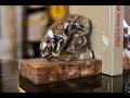 Verchromte Buchstützen trinkende Panther auf rötlichem Marmor