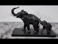 Diese ausdrucksstarke Bronze-Skulptur von Irénée Rochard zeigt ein bewegendes Motiv: eine Elefantenkuh mit ihrem Jungen in inniger Verbindung. Die fein modellierten Körper schmiegen sich zueinander, der Rüssel des Jungtiers berührt zärtlich die Flanke der Mutter – ein Moment voller Nähe und natürlicher Eleganz.